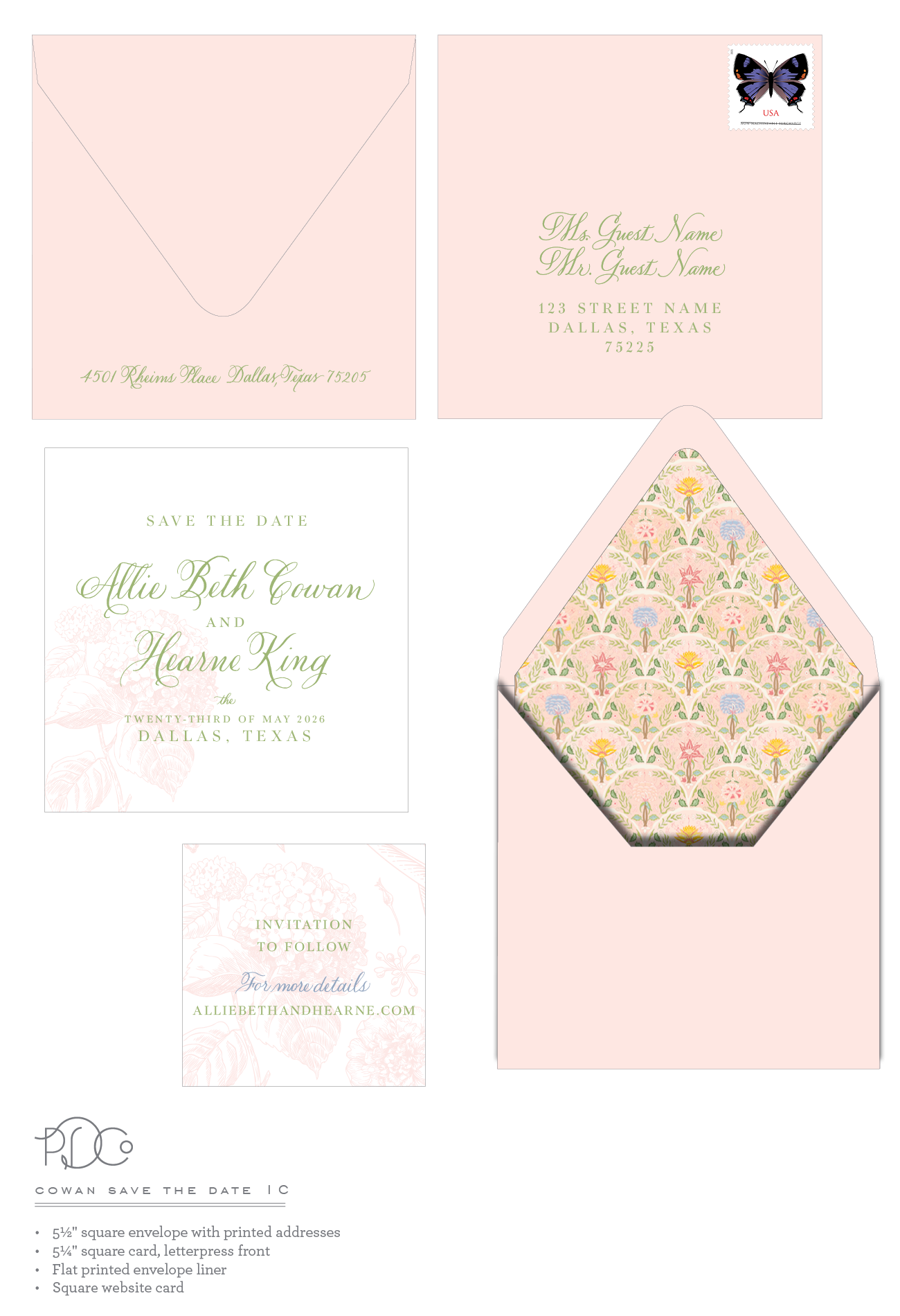 Allie Beth & Margaret have approved with (2) updates: *Painted green edging on save-the-date card *2-ply website card Thank you! Log in to Reply